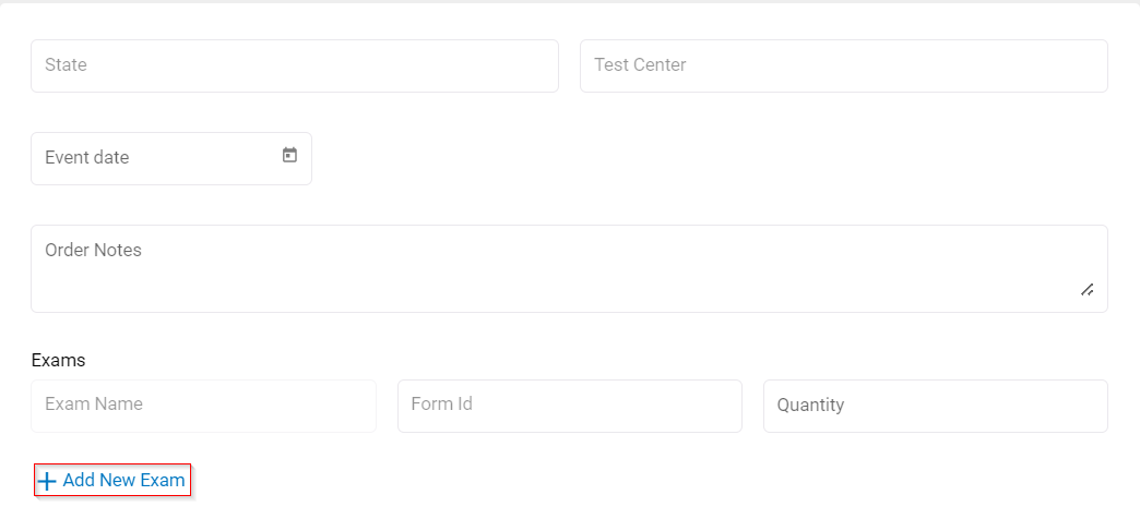 - Click on Add New Exam to add additional Form IDs and their quantity.