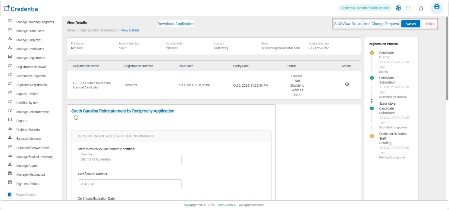 - View the Duplicate Certificate Request of the applied Candidate.