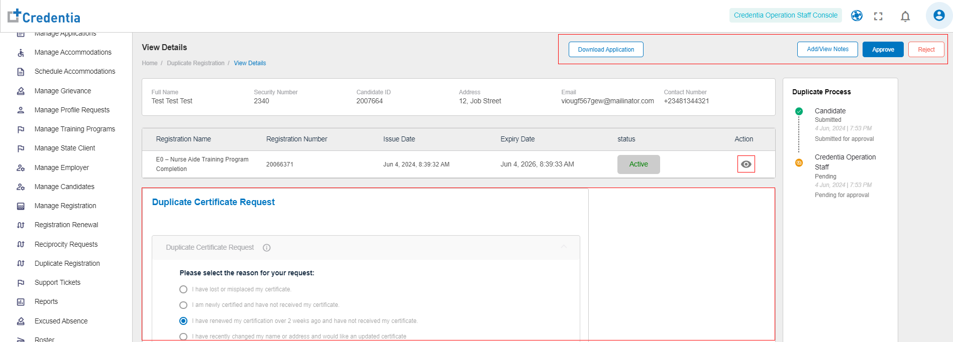 Note: In the Application Process section, we can see whether the application has been submitted, drafted, or pending, along with relevant dates. - Click Download Application.
