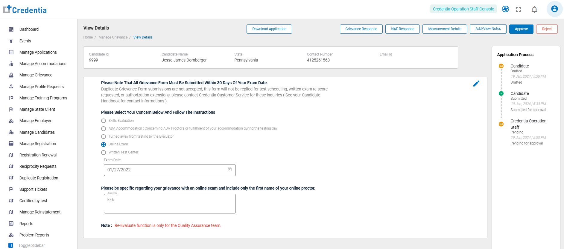 - Once you approve the grievance application, based on the grievance request by the candidate the action occurs.