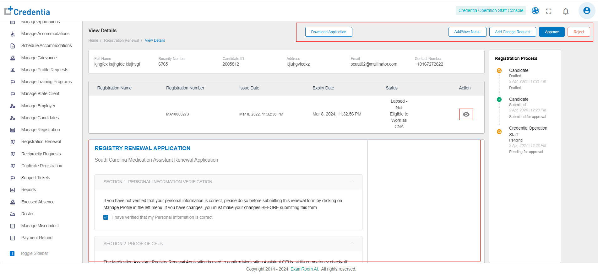 - View the Registry Renewal Application of the applied Candidate.