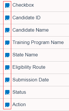 - Filter the list either by selecting the State or by entering the Candidate ID, Candidate Name, Training Program Name, and Eligibility Route.