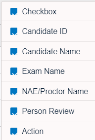 - Filter the list by entering the Candidate ID, Candidate Name, Exam Name, and Person Review.