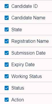- Filter the list either by selecting the State or by entering the Candidate ID, Candidate Name, and Submission Date.