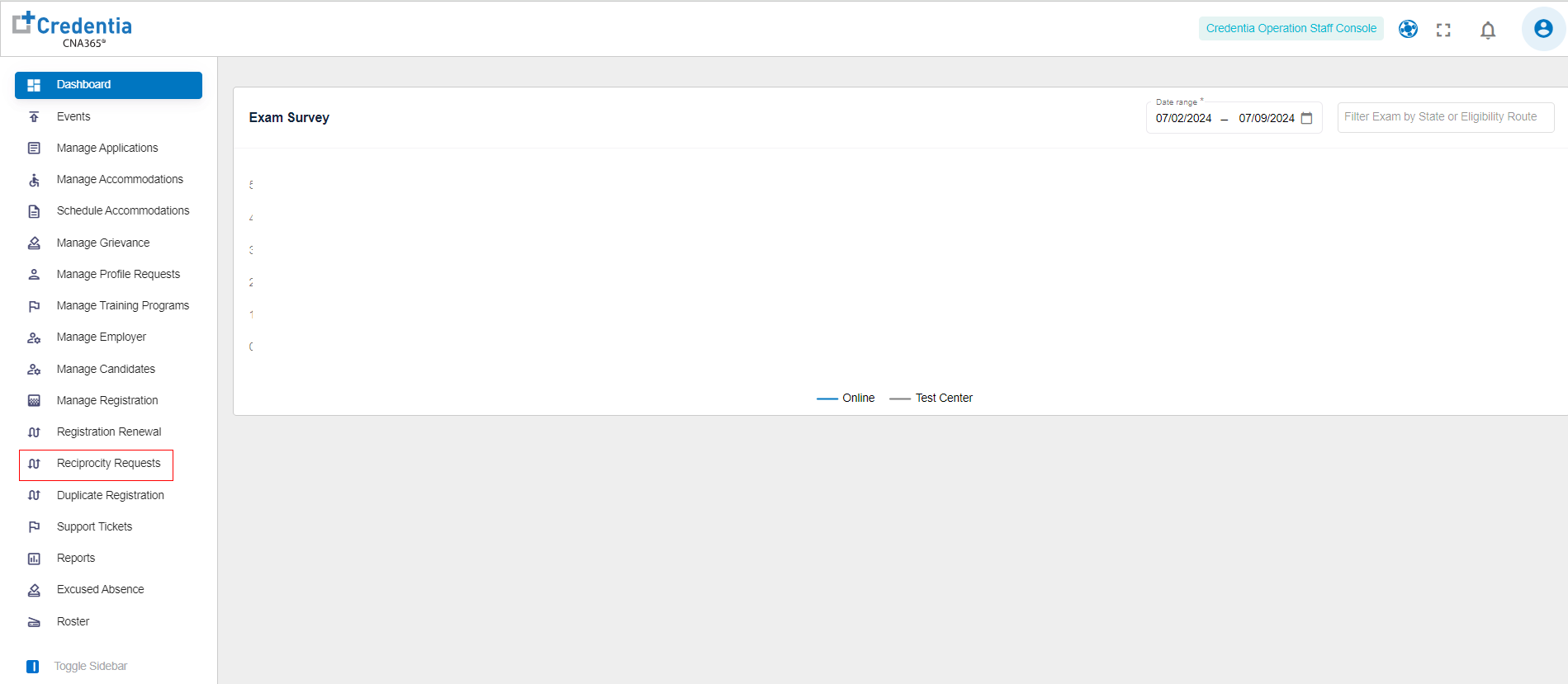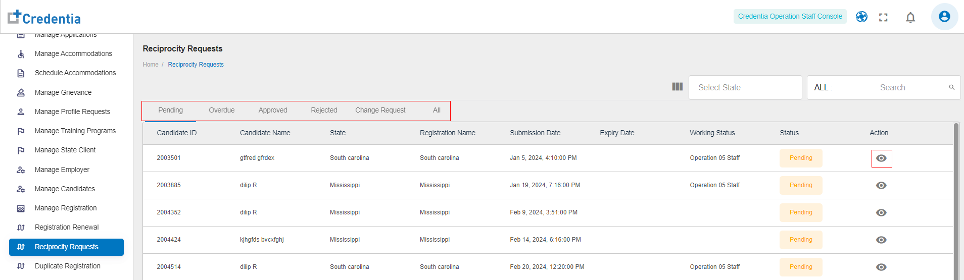 - Expiry Date – The date when the candidate's reciprocity request will expire or need to be renewed.