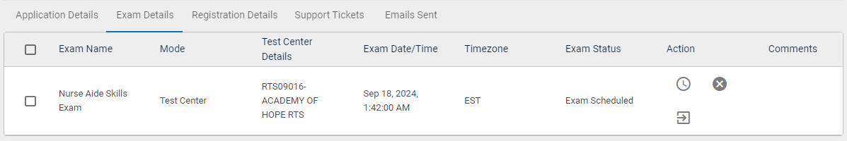 - Test Center Details – View the details of the test center.