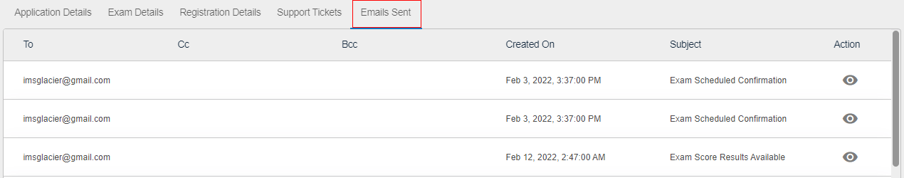 View icon to view all the Email Sent to that candidate.