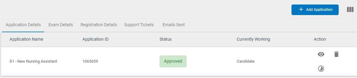 View icon to view all the applications that the candidate has raised.