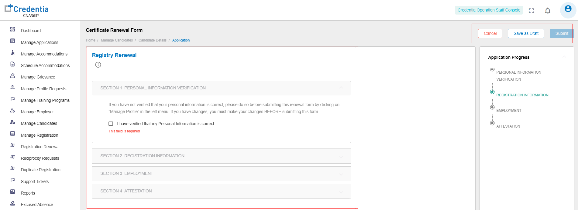 - Click Save as Draft to save the application for late use.