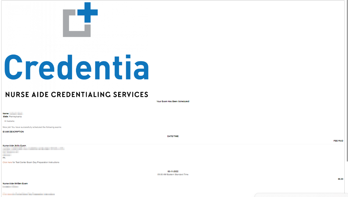 - Exam Date/Time – View the date and time of the exam.