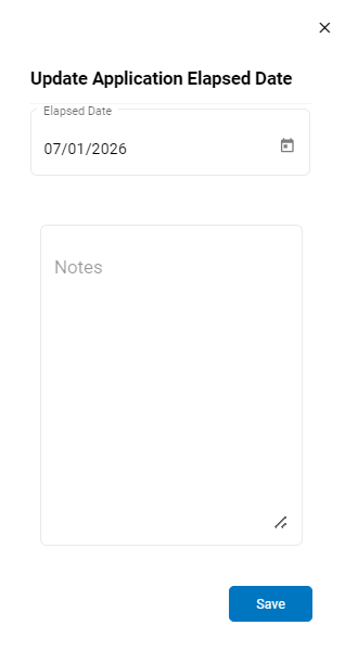 - Click Save to update the application elapsed date.