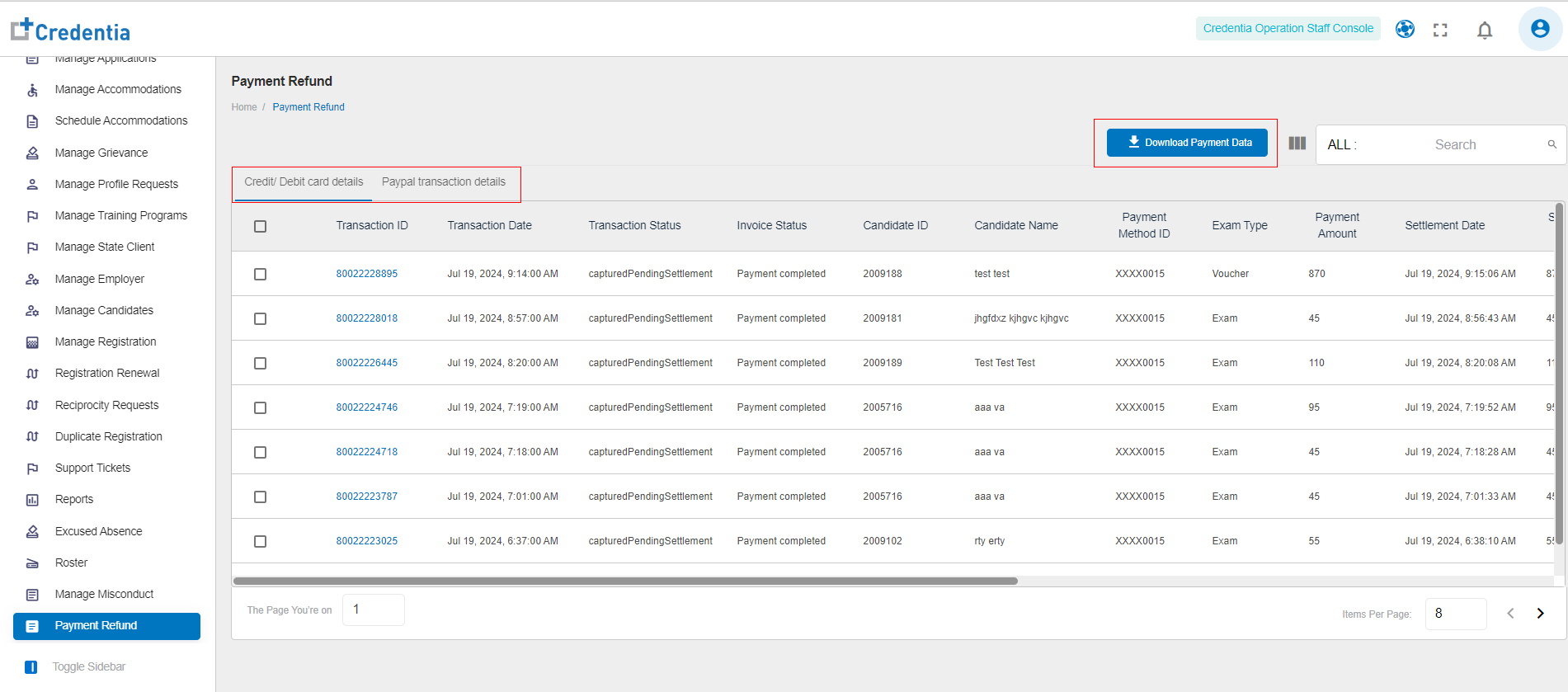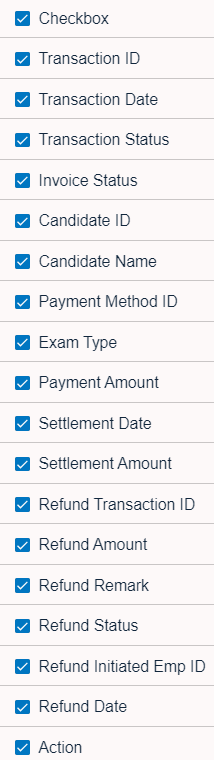 - Filter the list by entering the Candidate ID and Transaction ID.