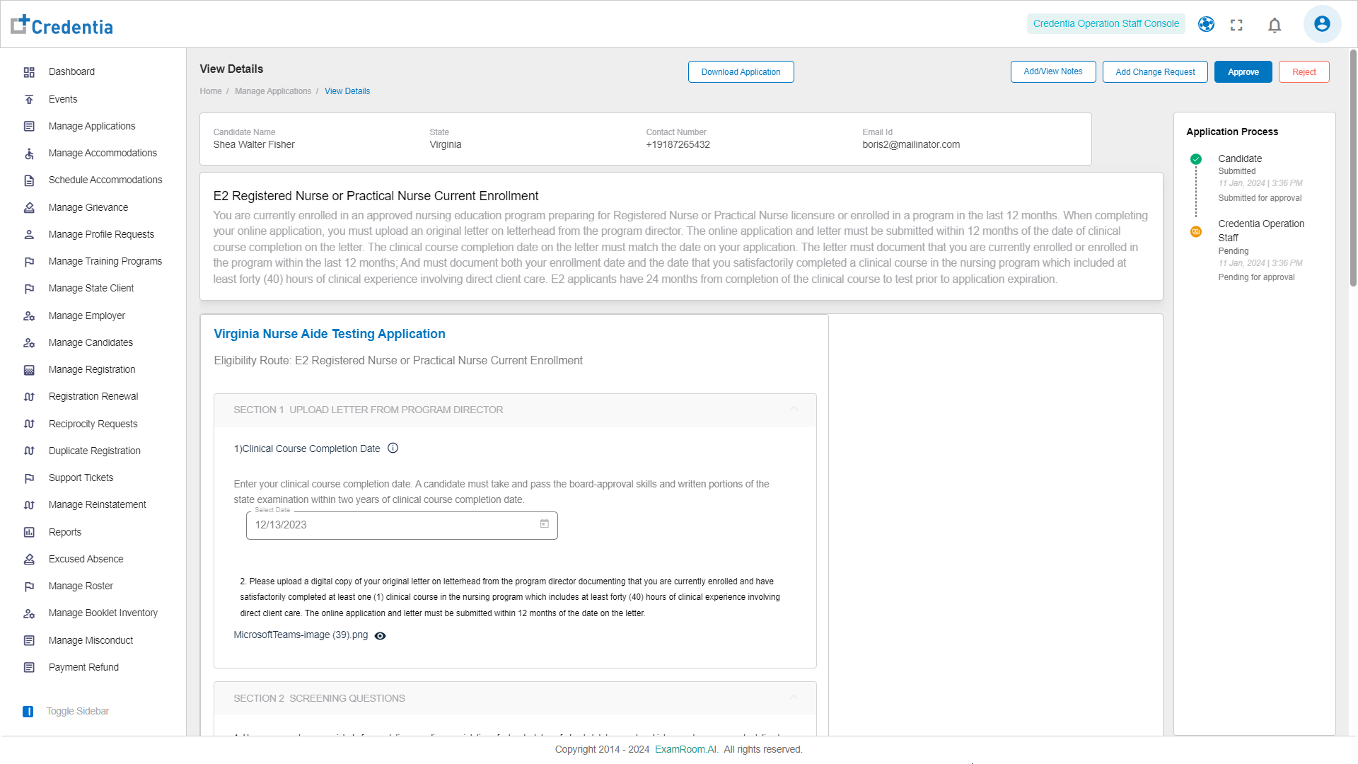 Note: Once the Change Request is saved. Candidates can view the comments. - Click Approve to approve the application.